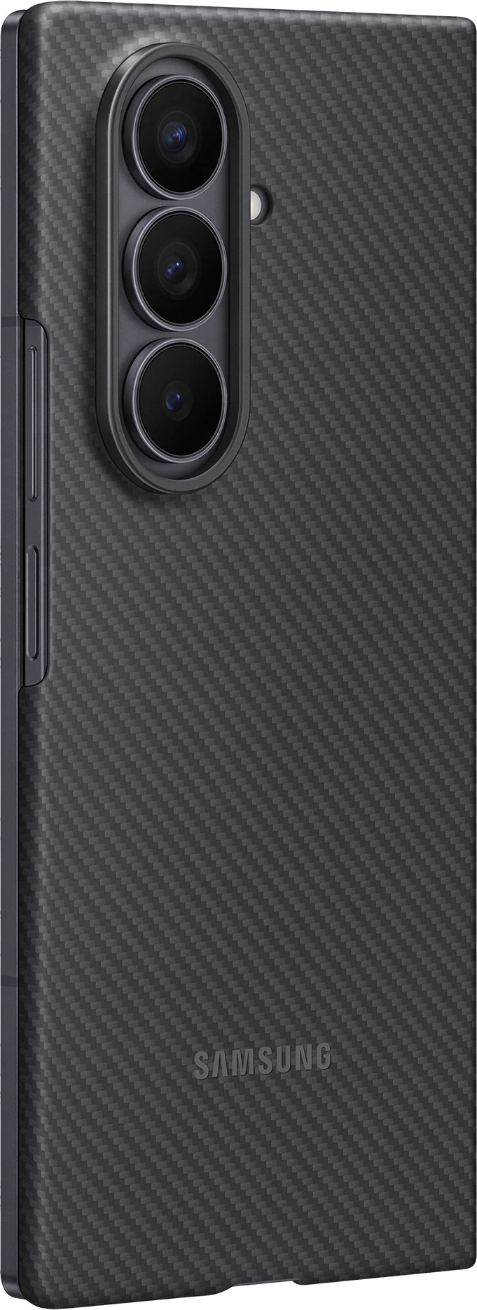 Das Carbon Shield Case für das Galaxy Z Fold7 vereint elegantes Design mit zuverlässigem Schutz. Hergestellt aus hochwertigem, widerstandsfähigem Aramid bietet es eine kratzfeste Oberfläche und schützt vor Stößen. Die passgenaue Form legt sich wie eine zweite Haus um dein Gerät und bewahrt das schlanke Design des Galaxy Z Fold7. Die leicht strukturierte Oberfläche sorgt für einen angenehmen, sicheren Griff. Mit dem Case schützt du nicht nur die Rückseite und die Rahmen deines Smartphones, sondern das Frontdisplays dank mitgeliefertem Anti-reflecting Film.